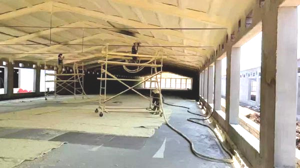 1) 基層平整(符合規(guī)范要求),噴涂前,清除基層松動(dòng)部位、浮灰、污物,堵好腳手眼,安裝好預(yù)埋件,基層必須干燥,含水量≤8%。