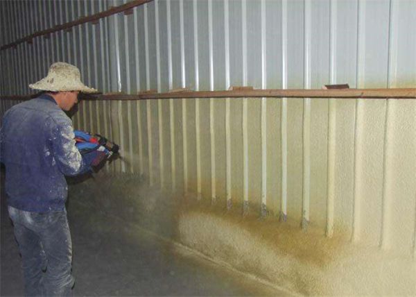 2、噴涂聚氨酯硬泡墻體保溫是以A料(異氰酸酯)加B料(多元醇、發(fā)泡劑、催化劑、阻燃劑等)經(jīng)高壓發(fā)泡設(shè)備現(xiàn)場噴涂發(fā)泡為保溫層,以聚合物干混砂漿為罩面層,以玻纖網(wǎng)格布為加強層的外墻外保溫系統(tǒng).飾面層適用于涂料、瓷磚、彈涂等。