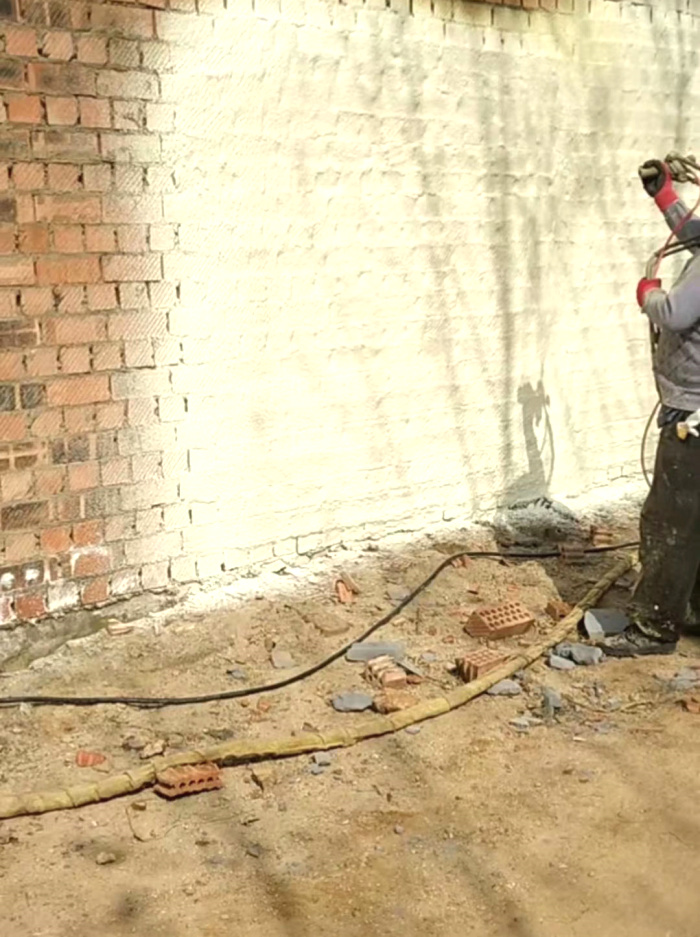 1) 基層平整(符合規(guī)范要求),噴涂前,清除基層松動部位、浮灰、污物,堵好腳手眼,安裝好預(yù)埋件,基層必須干燥,含水量≤8%。